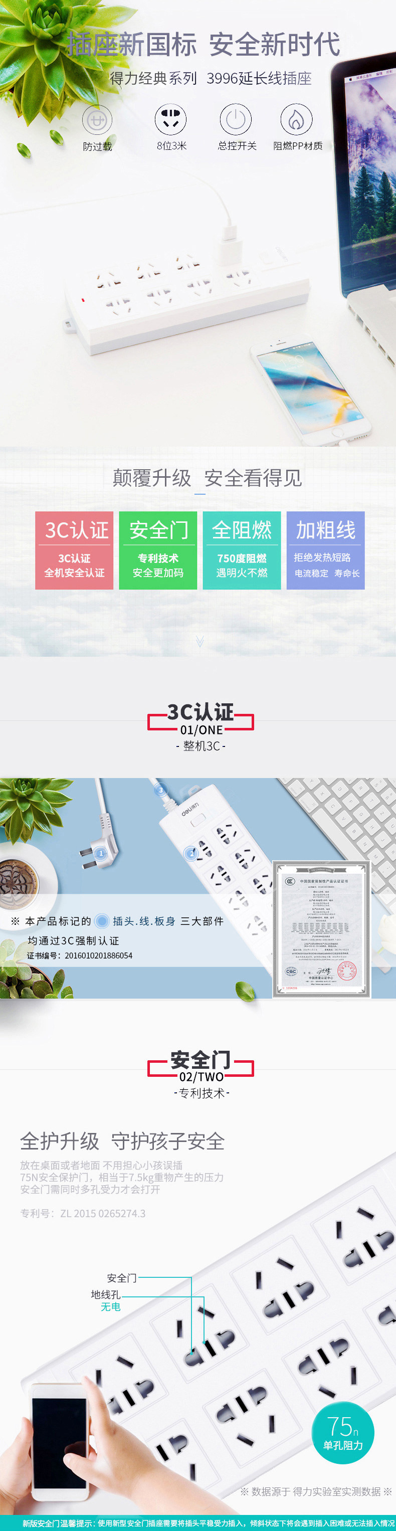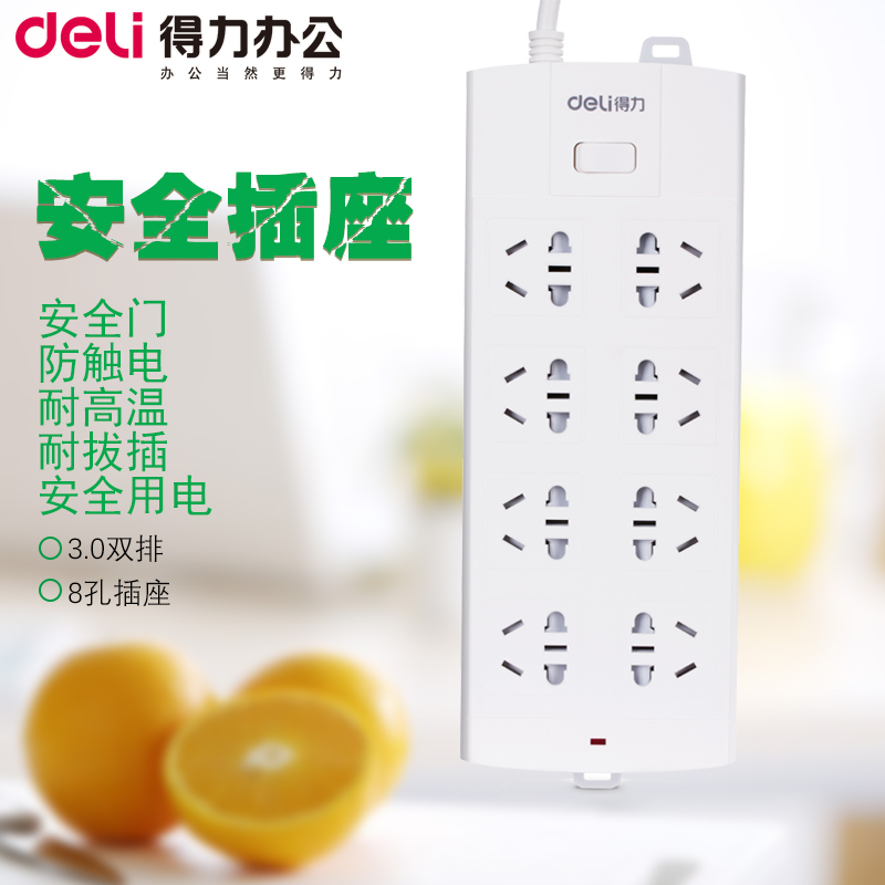 商品名称:得力(deli) 新国标 带安全门 总控开关插座/插排/插线板/接线板/排插/拖线板 3996(8组合插孔 3米线)