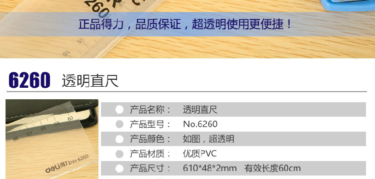 商品名称:得力(deli)6260透明直尺 测量仪尺 长60cm 学生用尺