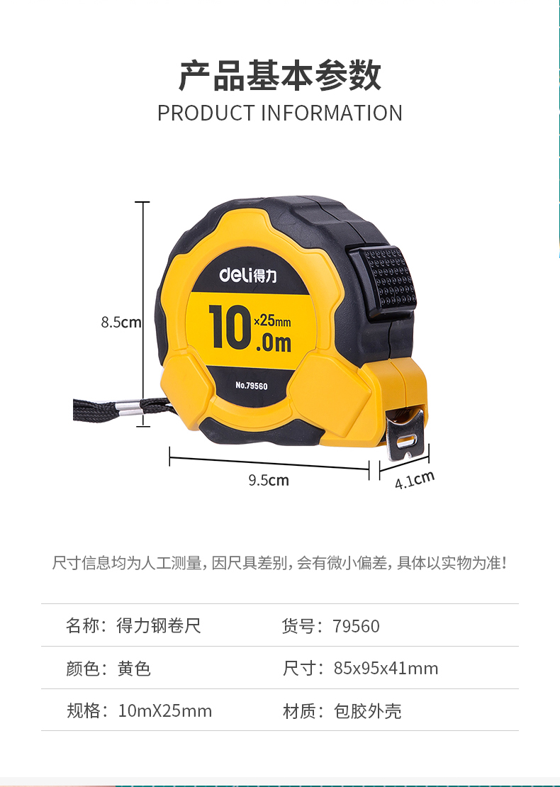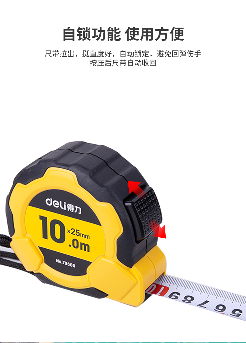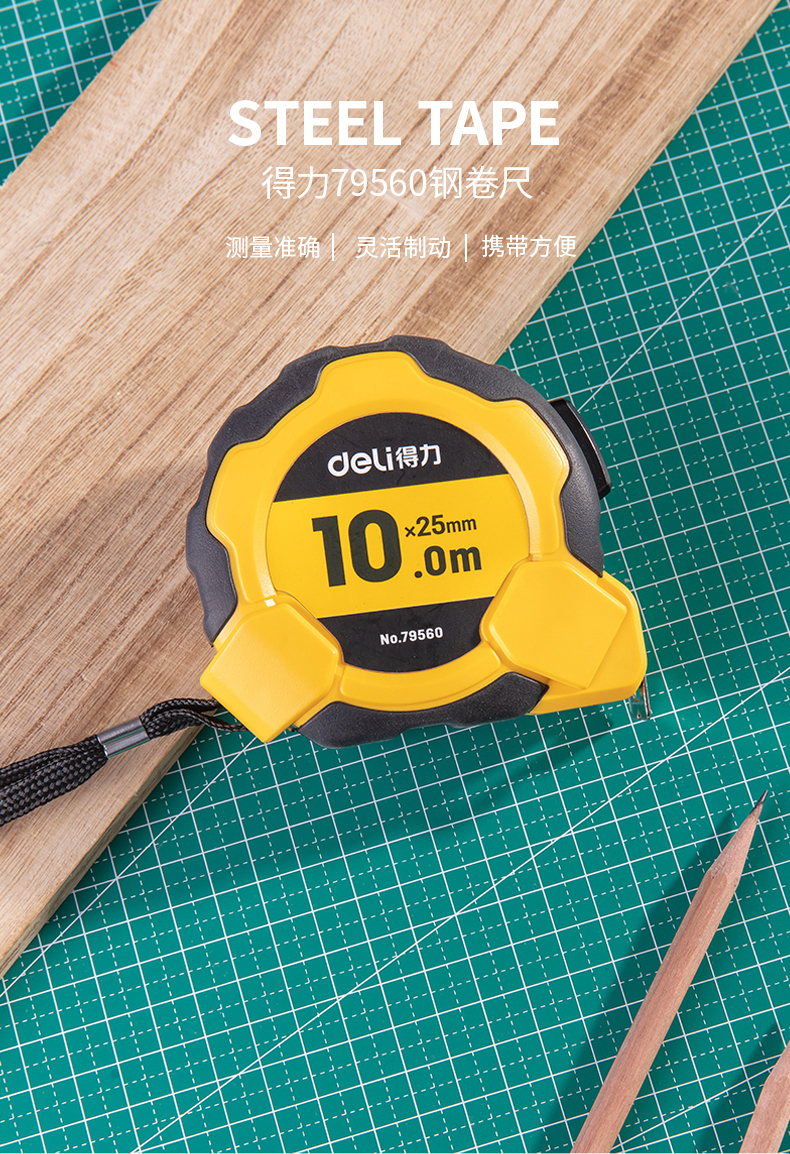 商品名称:得力79560钢卷尺10米木匠工业测量尺多功能尺子木工卷尺工具