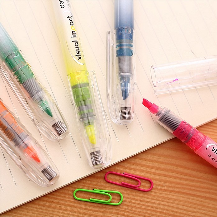 得力S618直液式荧光笔(红) 12支/盒
