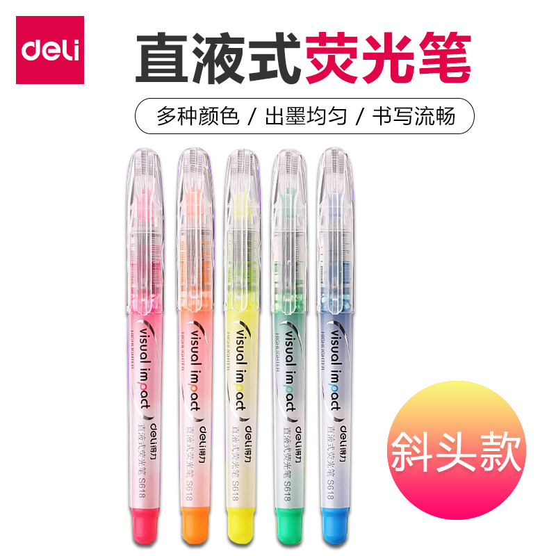 商品名称:得力S618直液式荧光笔(红) 12支/盒