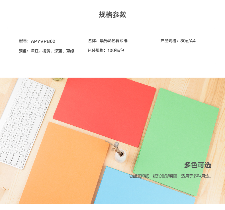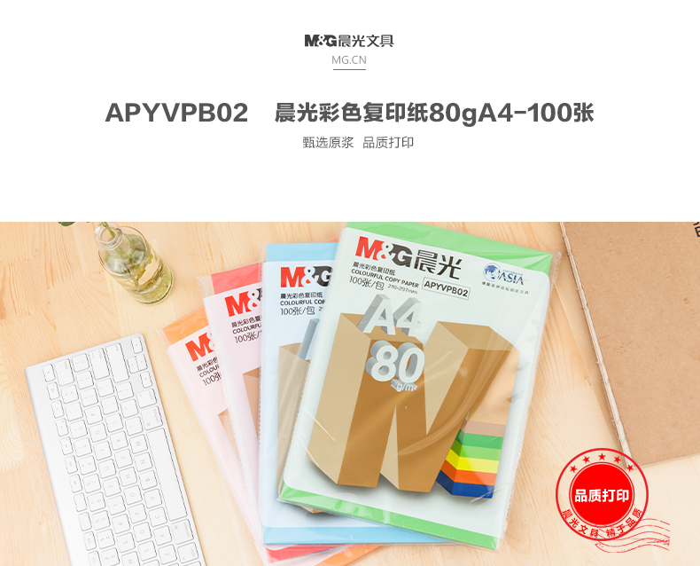 商品名称:晨光APYVPB02彩色复印纸 A4 80g 100张/包 25包/箱 橘黄 单位:包