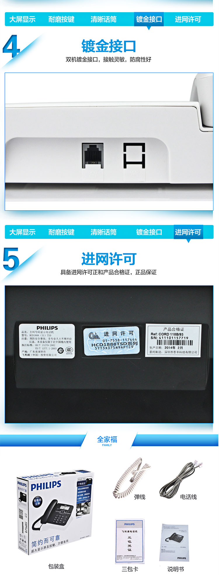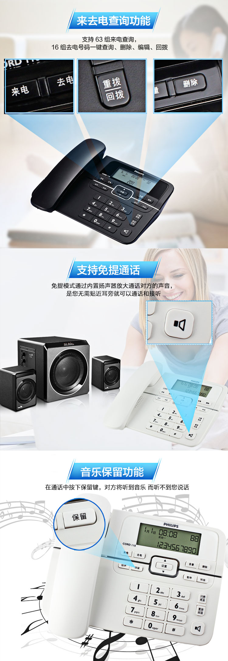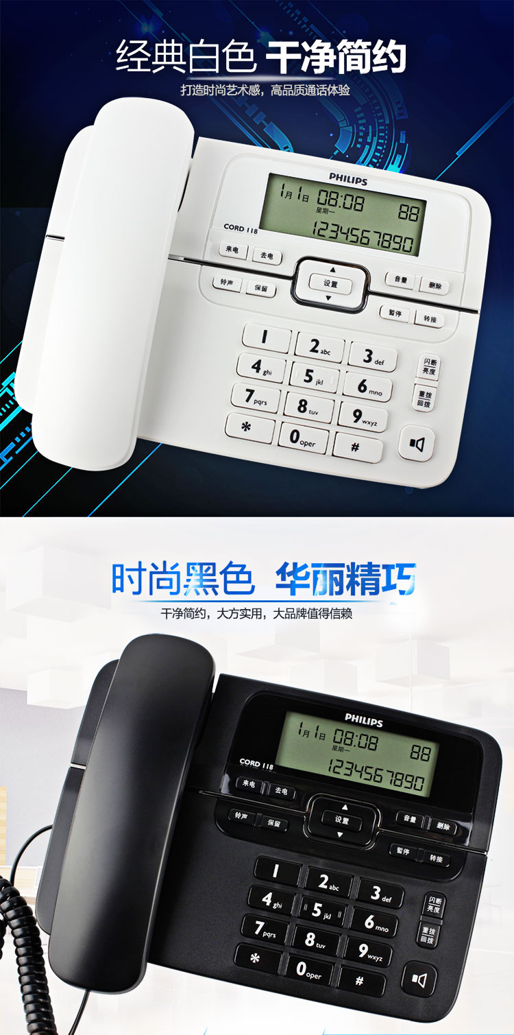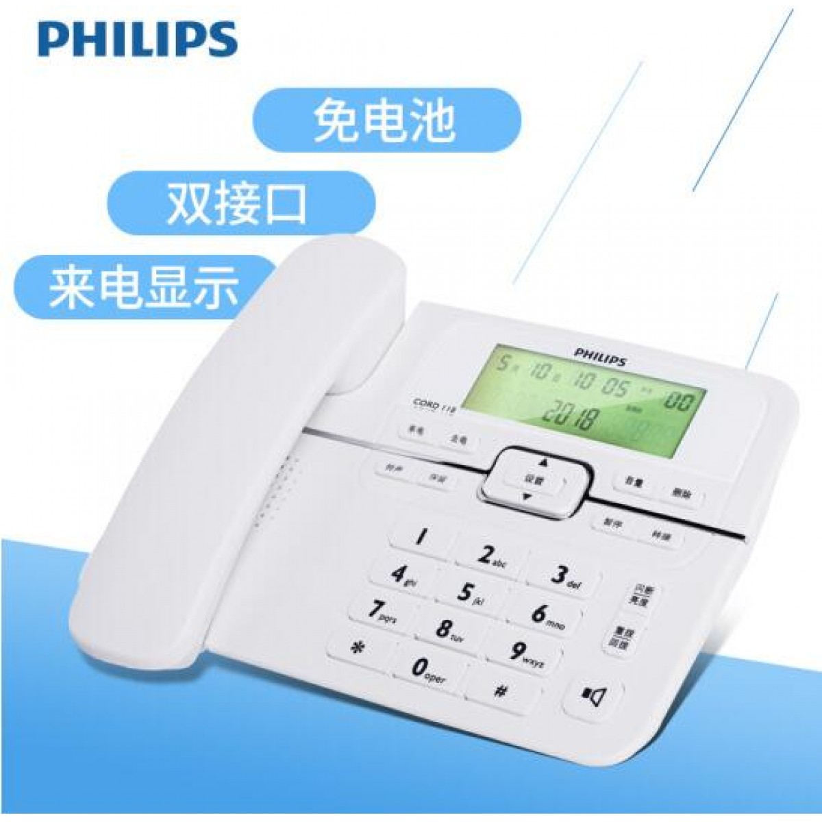 商品名称:飞利浦CORD118双接口免提家用电话机 白色