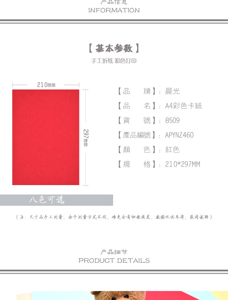 商品名称:晨光文具8510彩色多功能卡纸 皮纹纸 彩色打印纸 资料封面 浅蓝