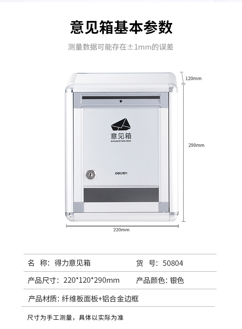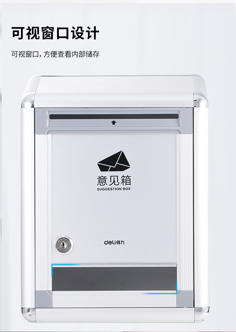 商品名称:得力(deli)50804 铝合金材质挂壁式员工顾客意见箱投诉箱留言箱 220*120*290mm