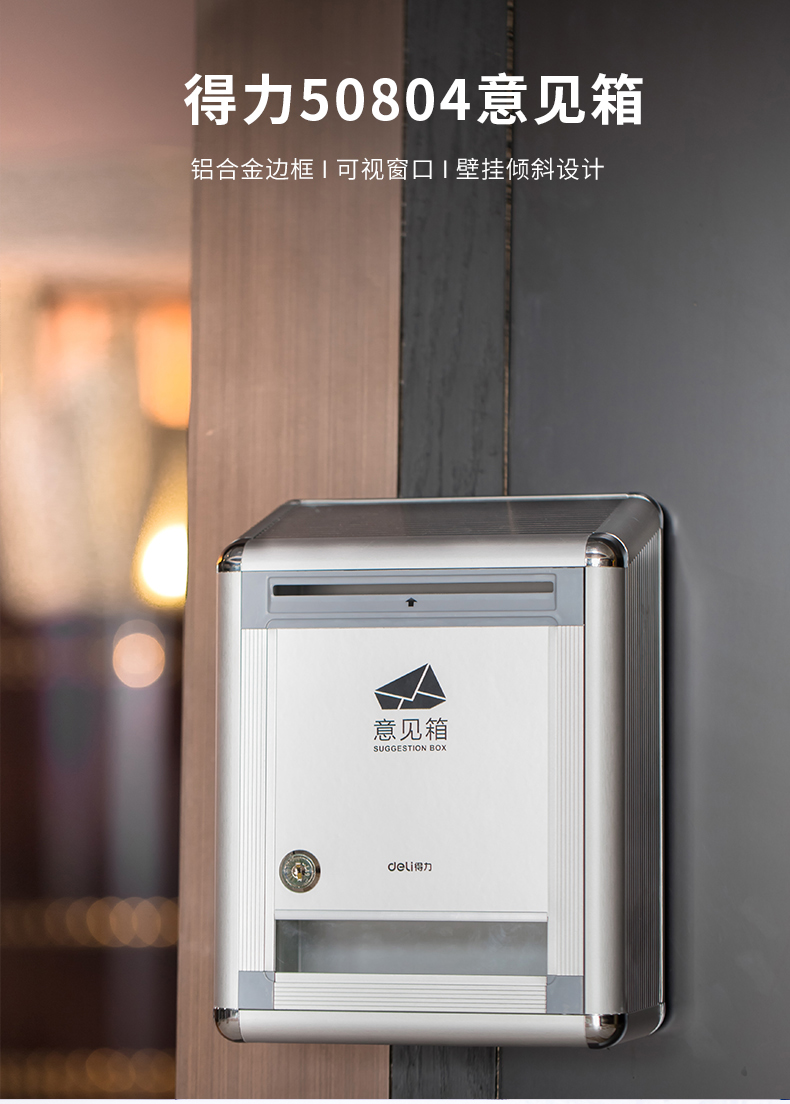 得力(deli)50804 铝合金材质挂壁式员工顾客意见箱投诉箱留言箱 220*120*290mm
