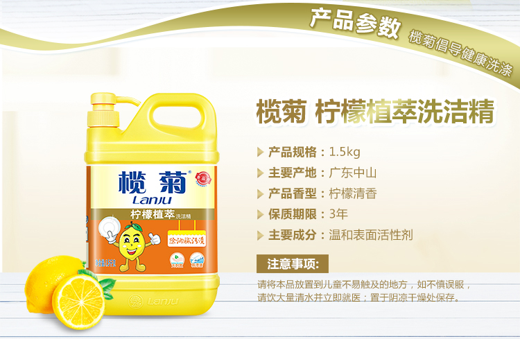 商品名称:柠檬橄榄植萃去油洗洁精污洗洁精 1.5kg/瓶 食品用 蔬果洗涤 不伤手 去油 祛味