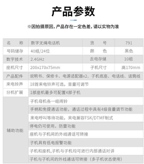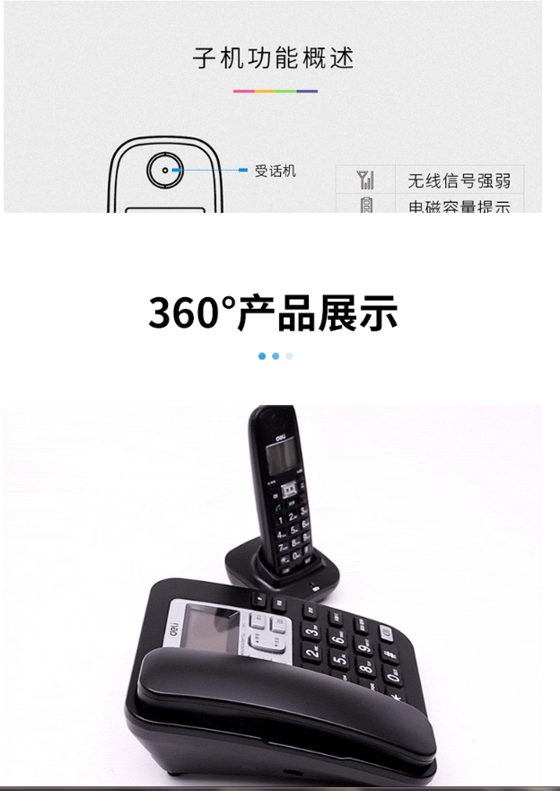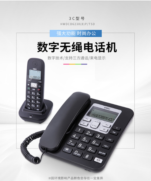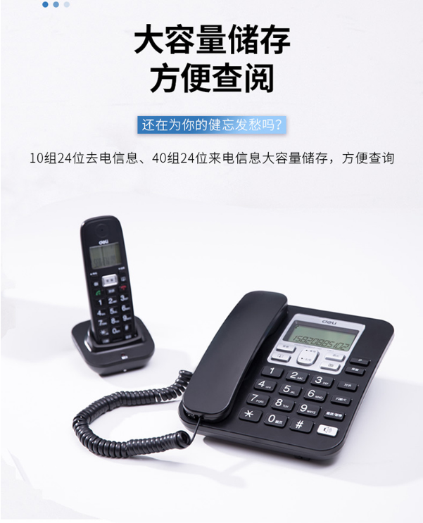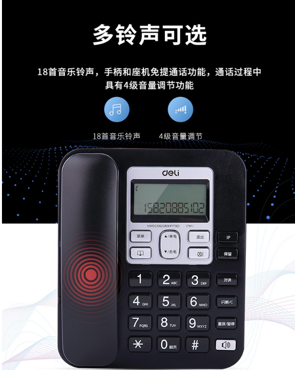 商品名称:得力791大屏幕数字电话机 子母机 黑色 单位:套