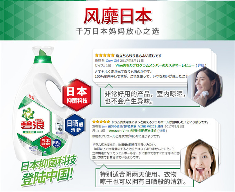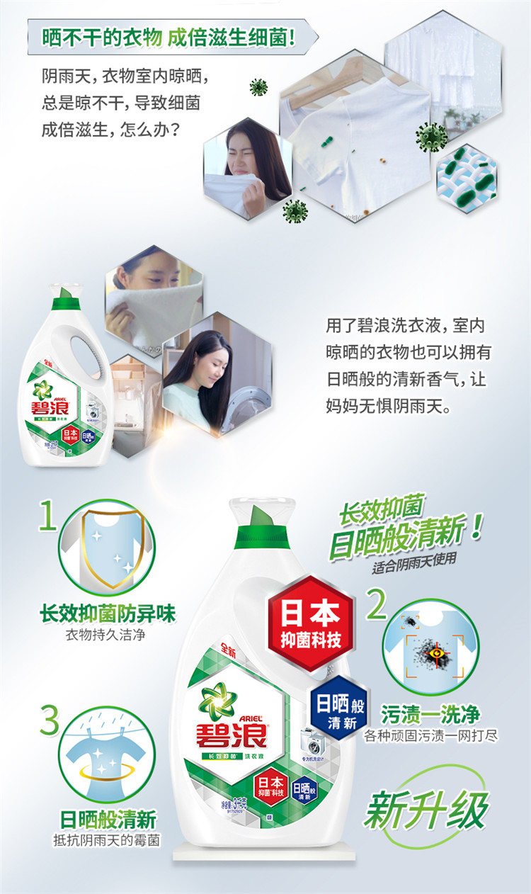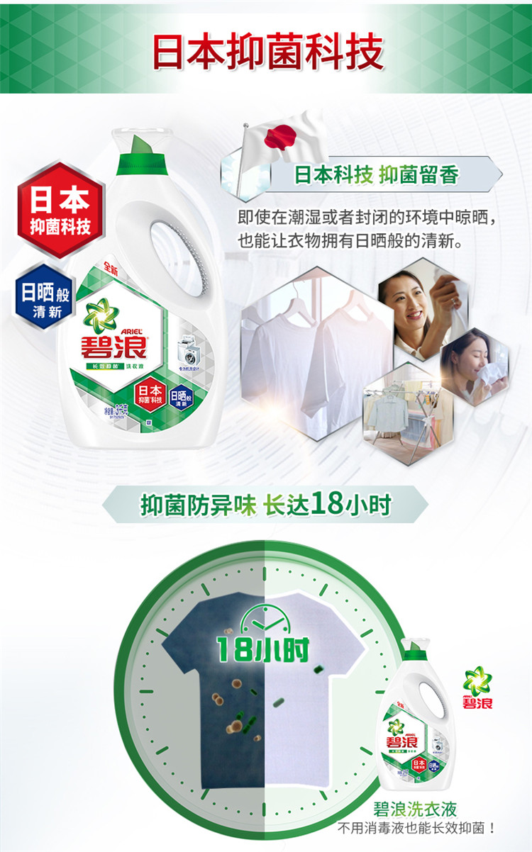 商品名称:碧浪 Ariel 洗衣液 日本抑菌科技 (日晒般清新) 3kg瓶装
