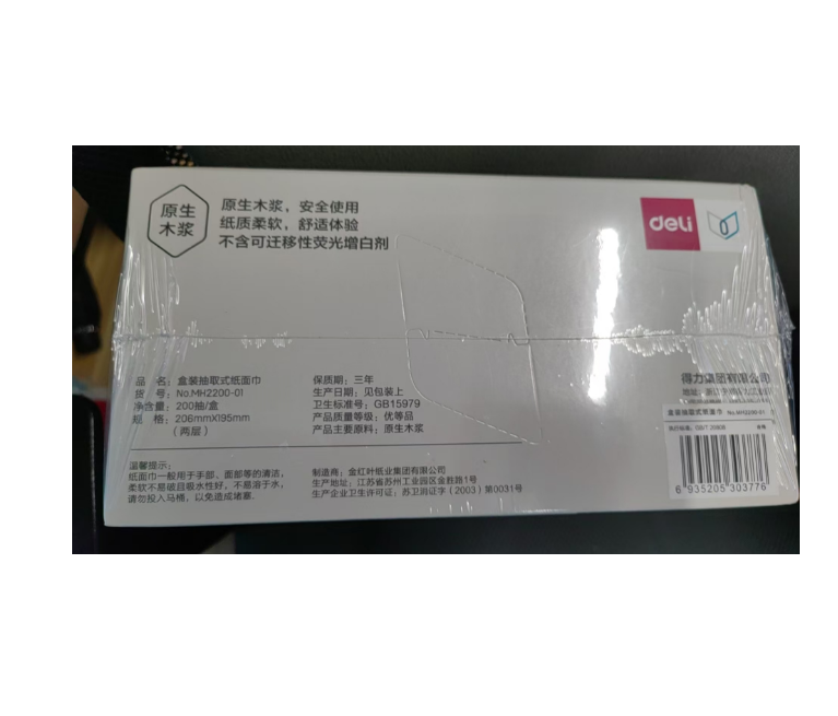 商品名称:得力MH2200-01 抽纸3包2层纸巾200抽家庭装面巾餐巾纸婴儿卫生纸抽 1箱/12提 3包/提