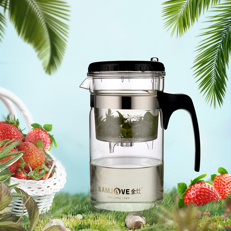 金灶TP-160茶壶茶具 耐热玻璃茶杯 按压式飘逸杯 玻璃泡茶壶 花茶壶绿茶杯 500ML