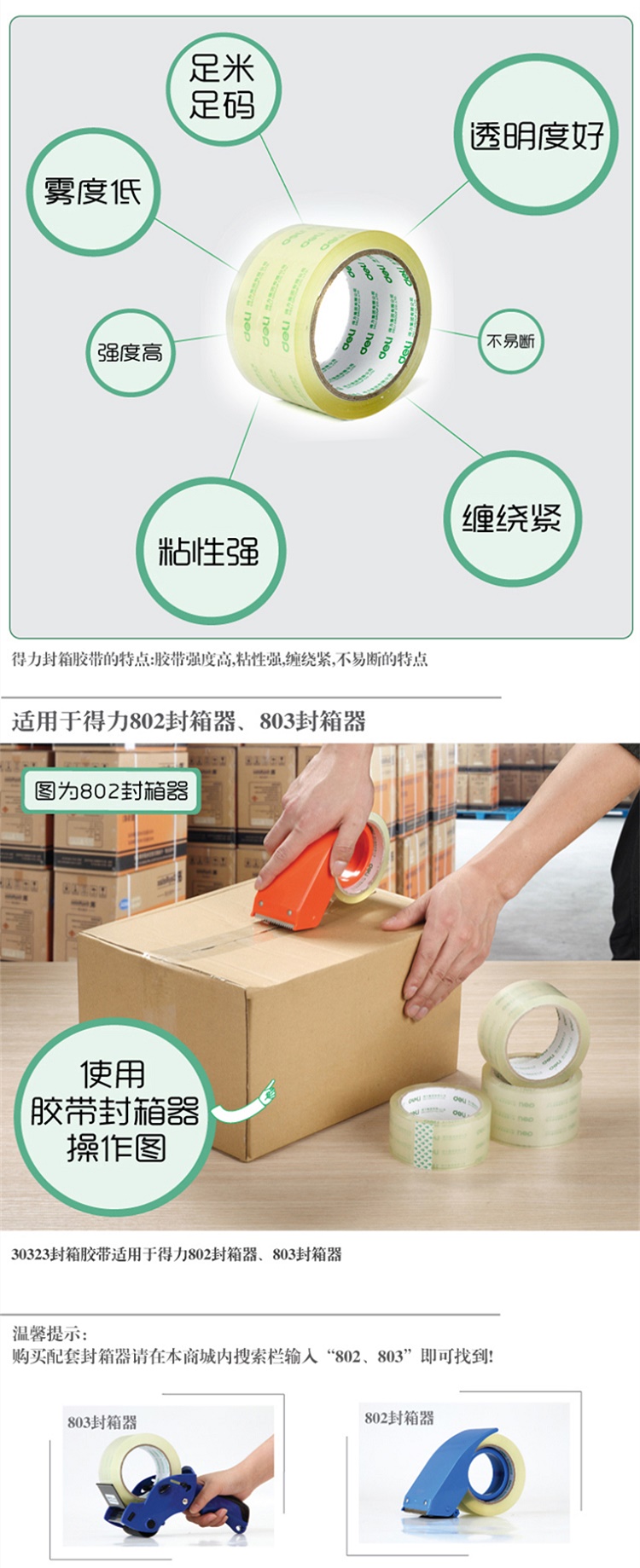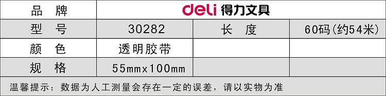 商品名称:得力30282普透封箱胶带55mm*60y*45um(6卷/筒)
