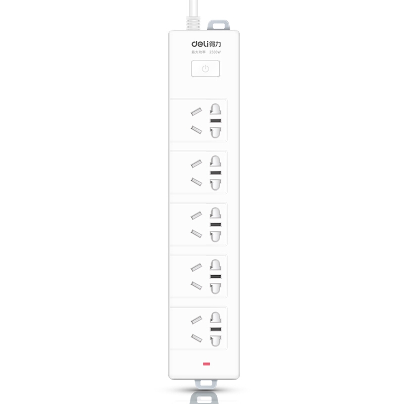 得力(deli)18254 新国标5位组合孔3米 总控开关插座/插排/插线板/接线板/排插/拖线板