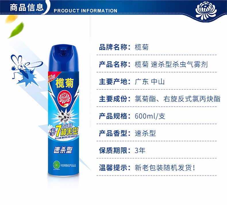 商品名称:榄菊速杀型无香无味杀虫气雾剂600ml/瓶 杀虫剂 蟑螂药 喷雾 杀虫水 除虫剂