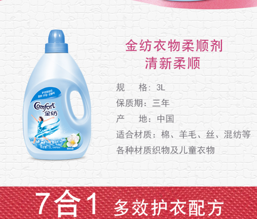 商品名称:金纺柔顺剂 衣物护理剂 柔软护型清新柔顺(3L+400ML)1*3