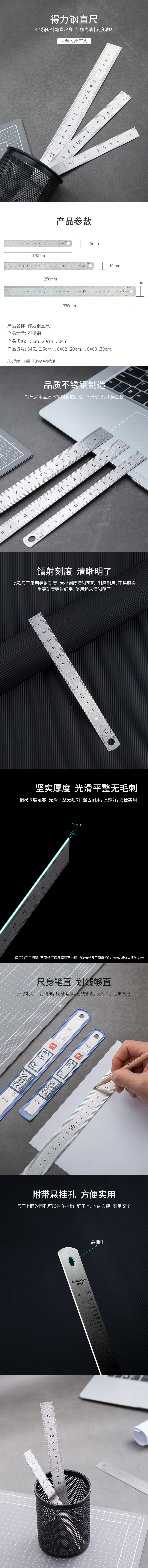 商品名称:得力(deli)8461 不锈钢尺/塑料直尺子 办公文具用品 不锈钢15cm