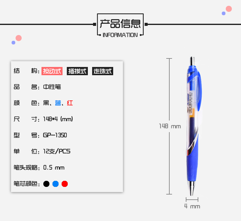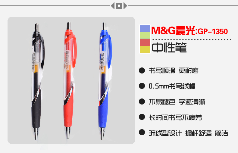 商品名称:晨光(M&G)GP-1350按动弹簧中性笔 0.5mm办公学习笔 黑色12支/盒