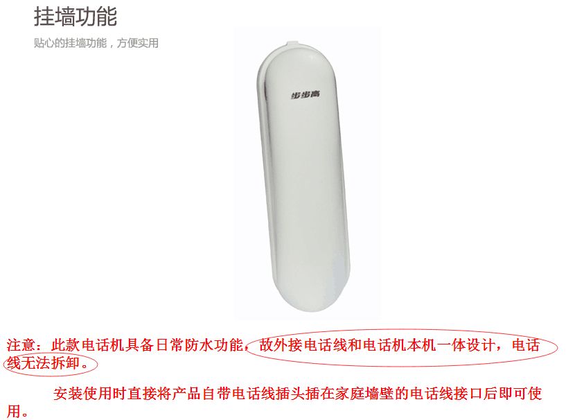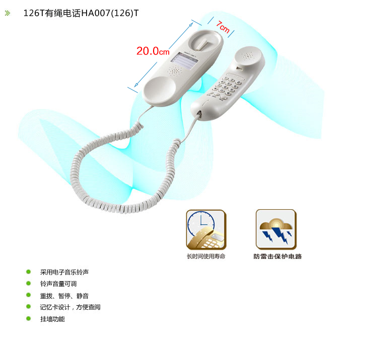 商品名称:步步高 HA007(126T)有绳固定电话机座机 挂墙面包机 家用酒店办公(玉白)