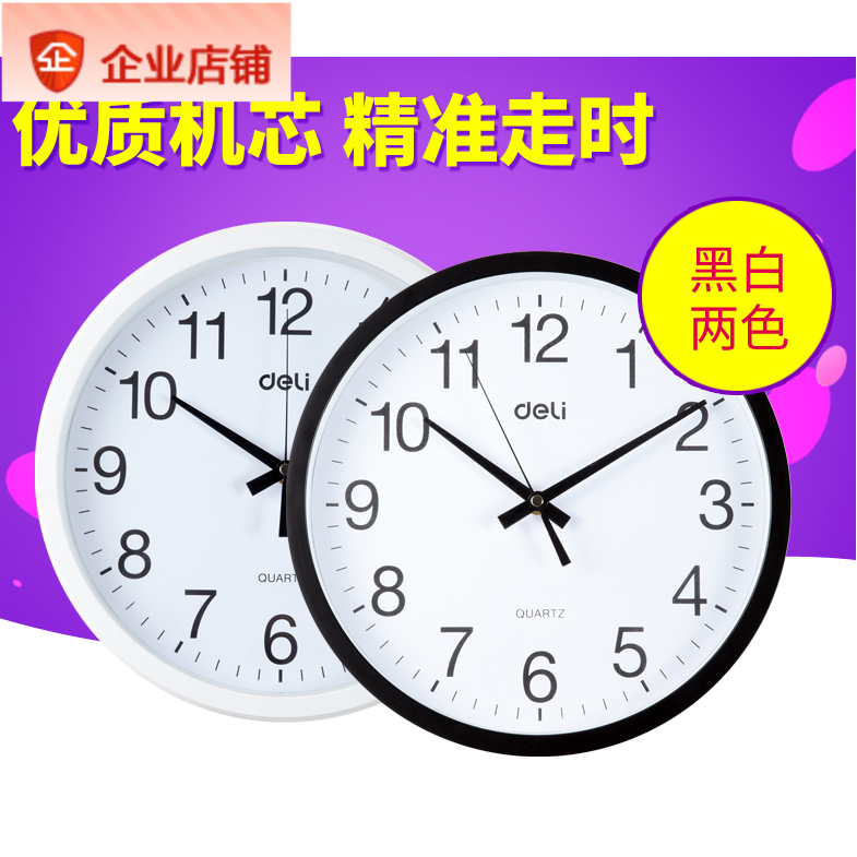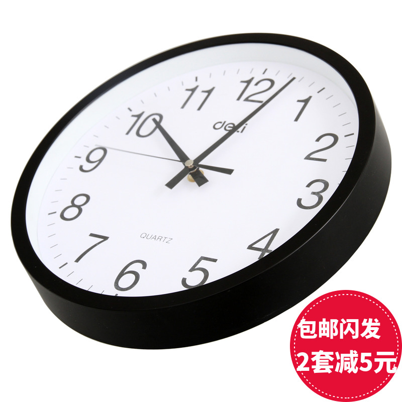 商品名称:得力9005 简约圆形挂钟(黑色)