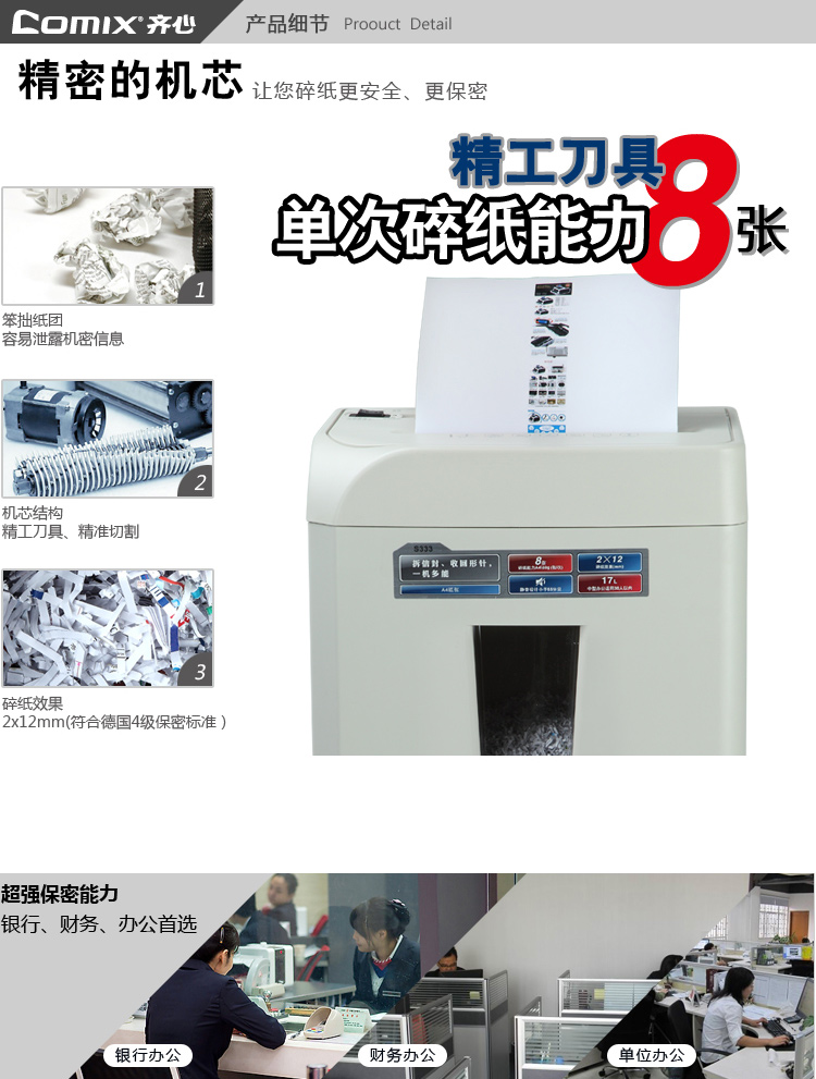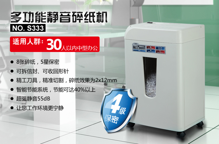 商品名称:齐心S333 强力保密型办公电动保密碎纸机 2×12mm