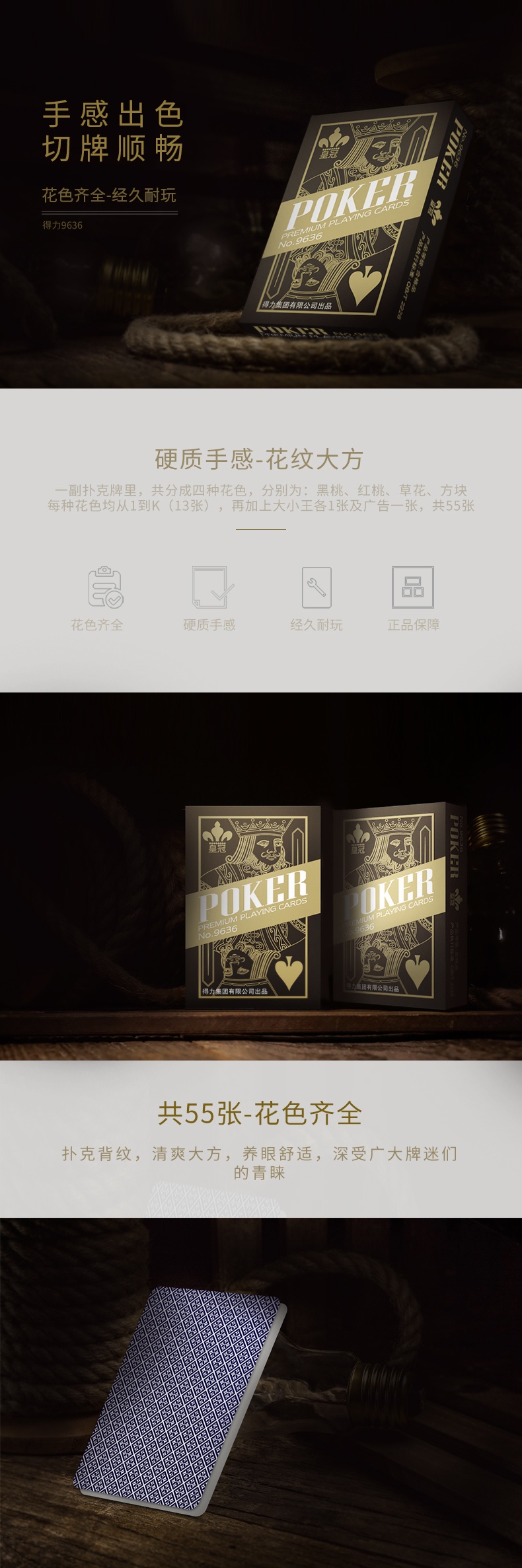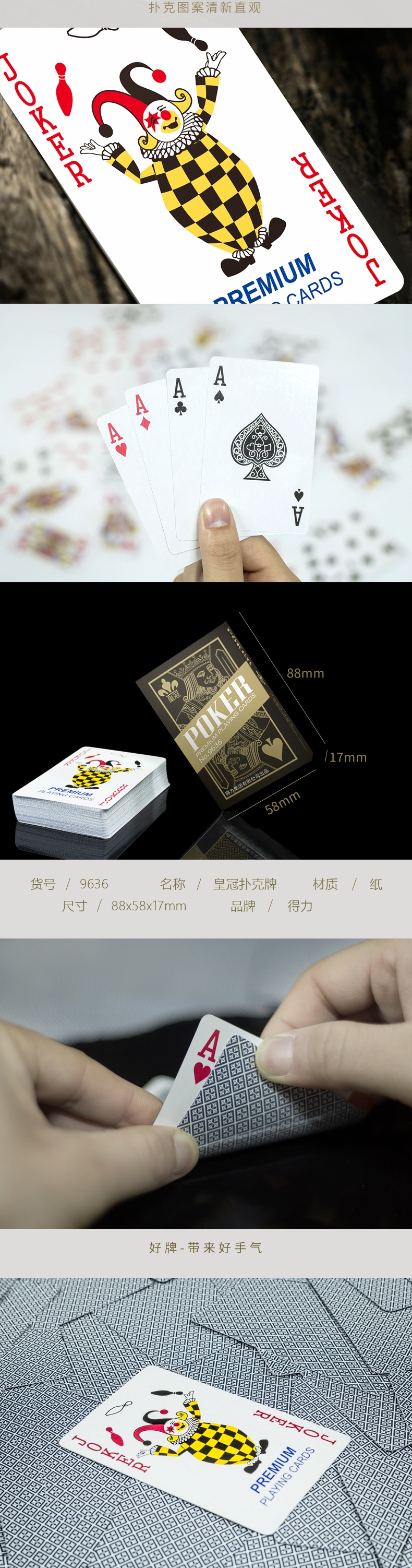 商品名称:得力9636扑克牌 皇冠精品扑克 回弹性强 手感好耐用(金)87*57mm