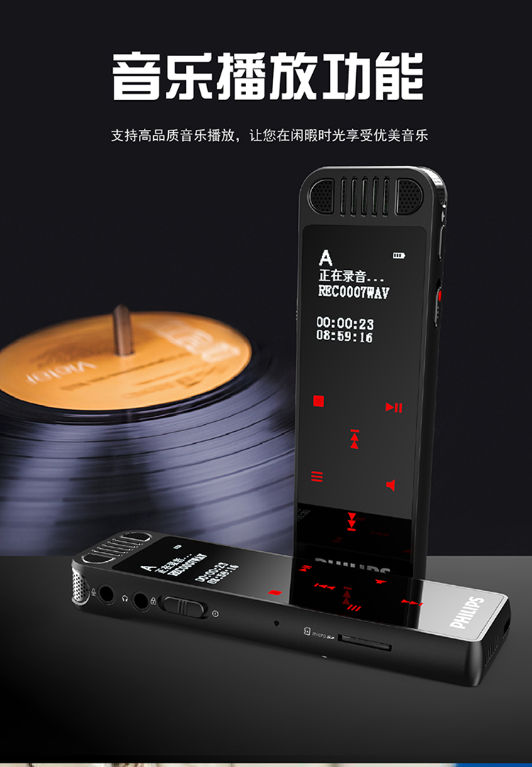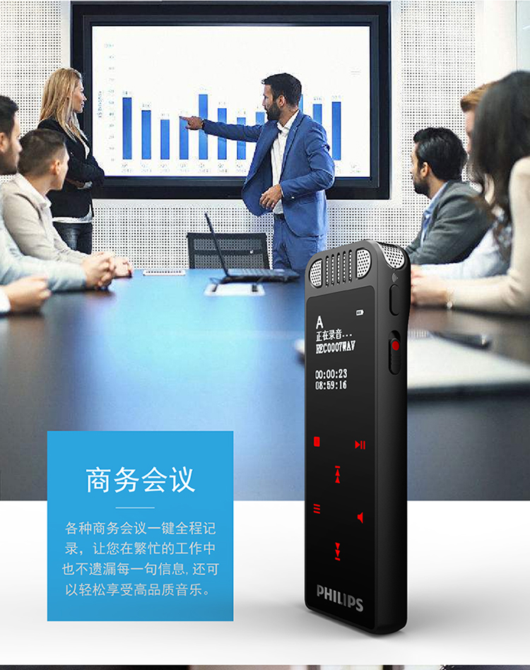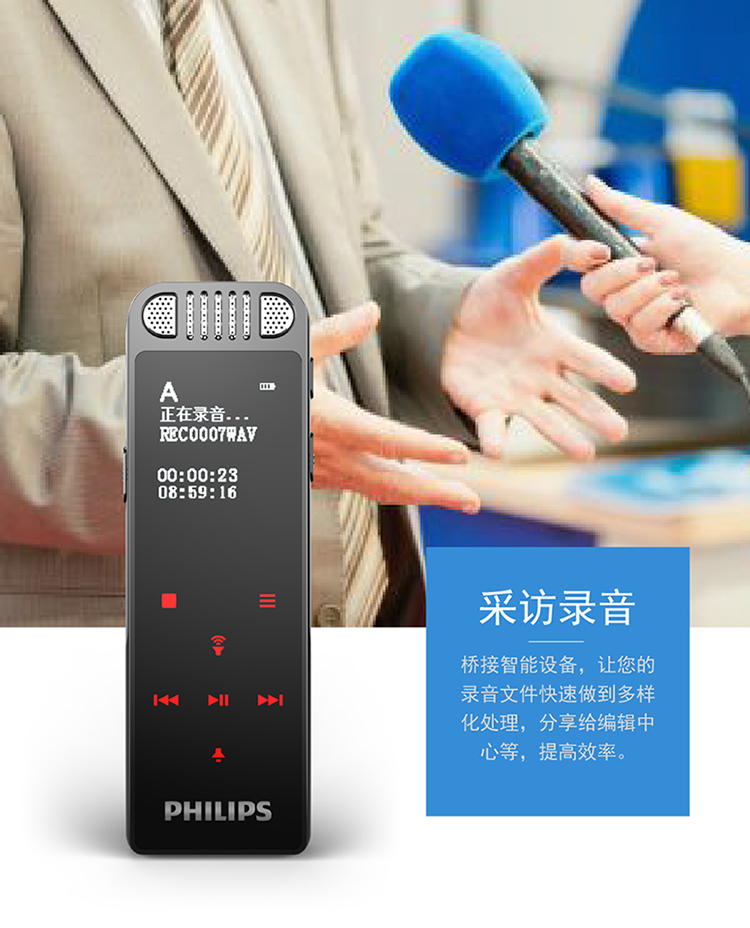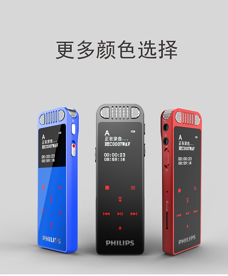商品名称:飞利浦(PHILIPS)VTR8060 16GB 会议 学习记录 WIFI 语音转文本 APP文件传输分享 智能数字降噪录音笔