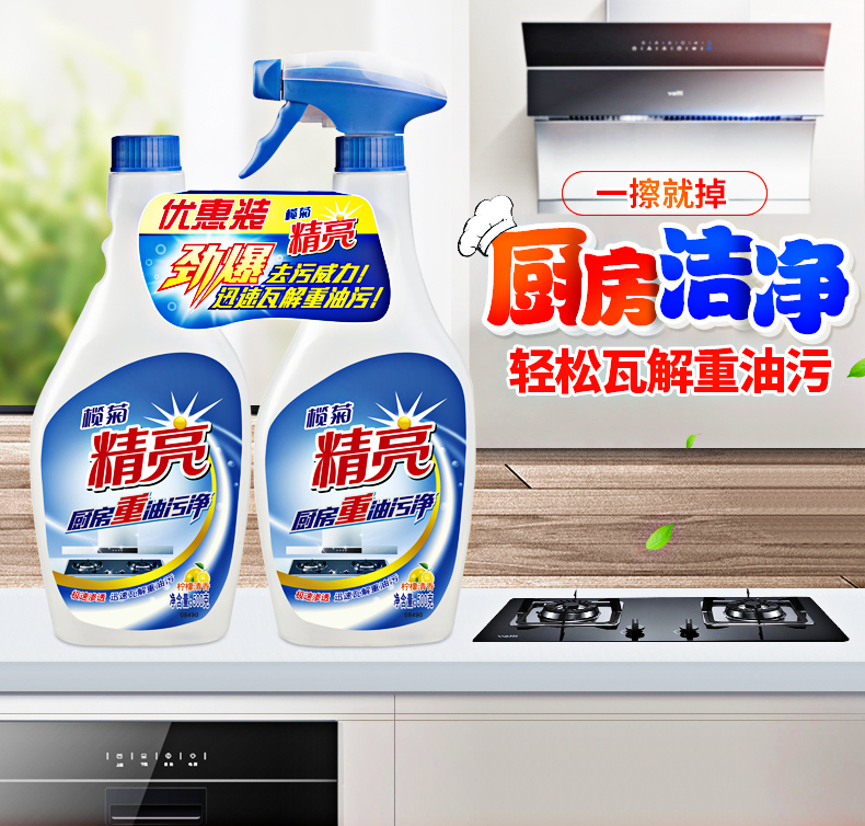 榄菊精亮柠檬香厨房重油污净500g洗油烟机除臭去味去渍