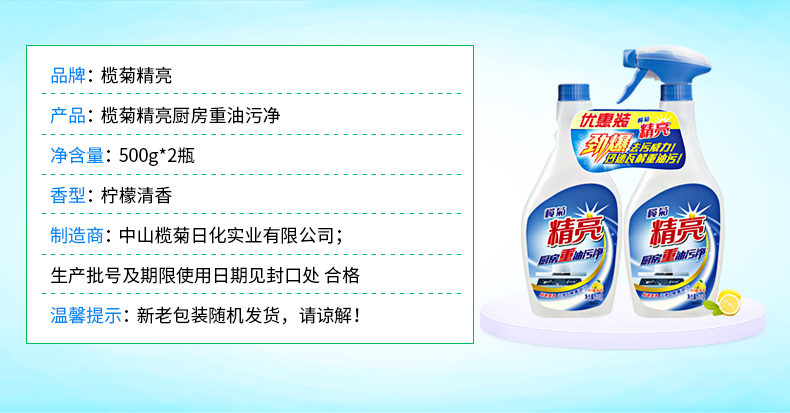 商品名称:榄菊精亮柠檬香厨房重油污净500g洗油烟机除臭去味去渍