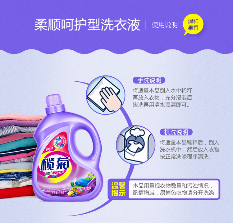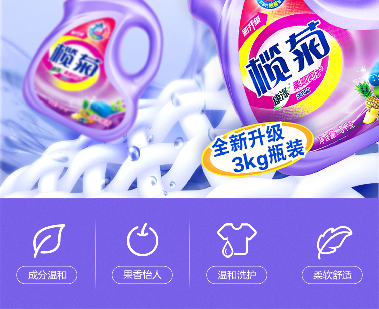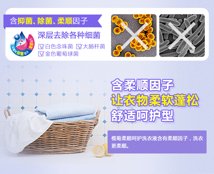 商品名称:榄菊 康涤柔顺呵护除菌洗衣液 3kg 温和 易漂洗 香氛