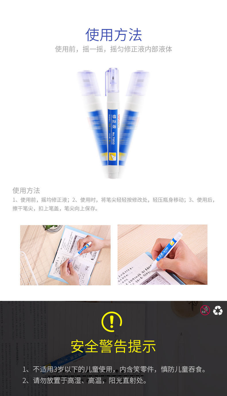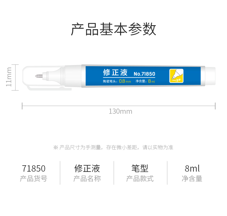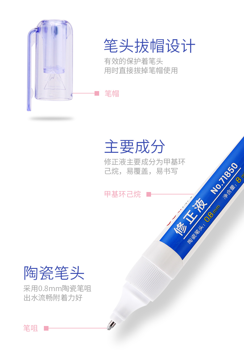 商品名称:得力71850修正液涂改液陶瓷笔头8ml 快干学生用易覆盖易书写 单个