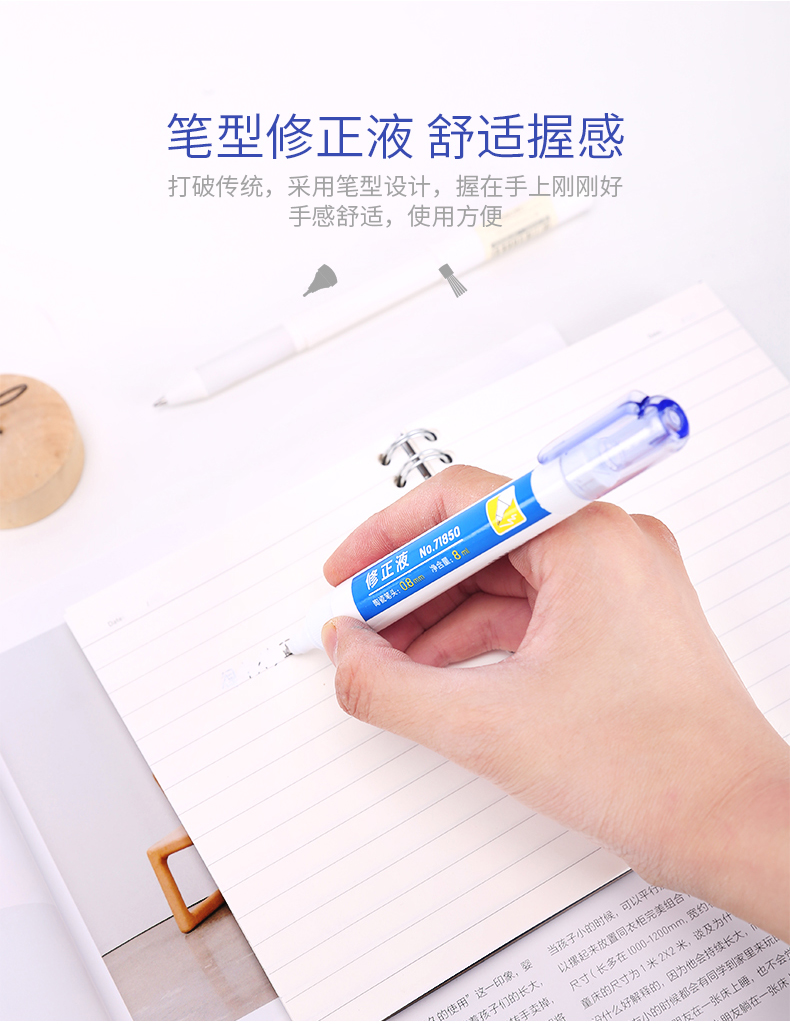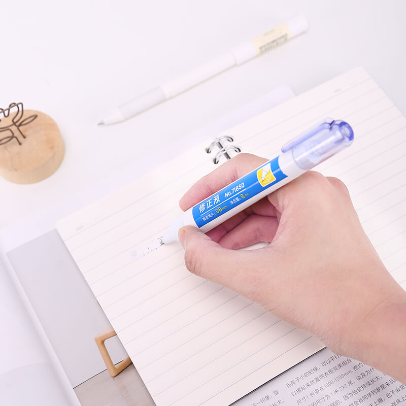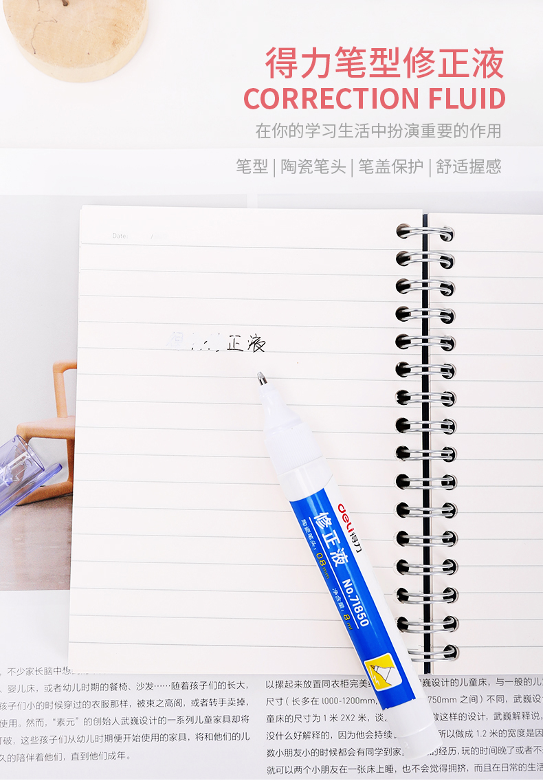 得力71850修正液涂改液陶瓷笔头8ml 快干学生用易覆盖易书写 单个