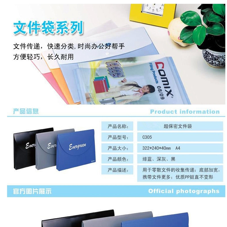 商品名称:齐心C305保密文件袋A4粘扣式文件盒 一箱144个