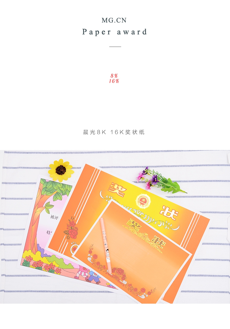晨光文具奖状幼儿园花篮光荣花奖状16开 一包50张 16K/ASC99367