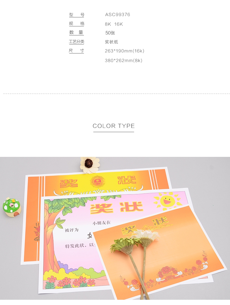 商品名称:晨光文具奖状幼儿园花篮光荣花奖状16开 一包50张 16K/ASC99367