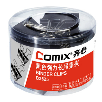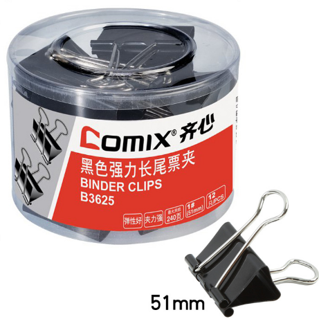 齐心(COMIX)B3625 12只50mm黑色长尾票夹 金属票据夹燕尾夹铁夹子 大号