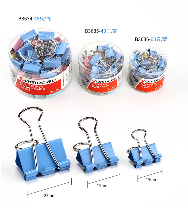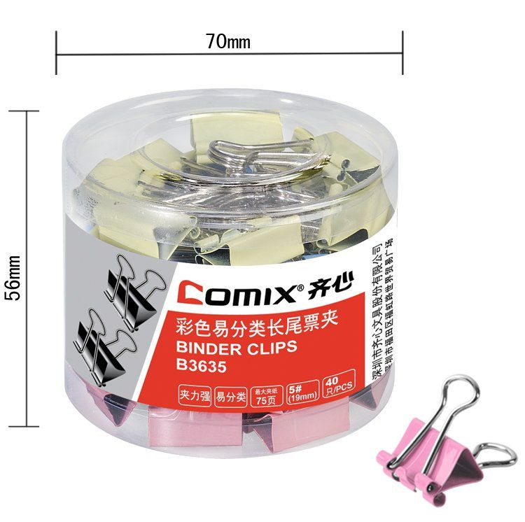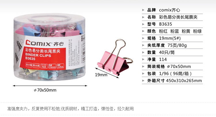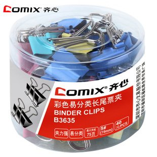 商品名称:齐心B3635 彩色长尾夹票 5#19mm40只/筒小号
