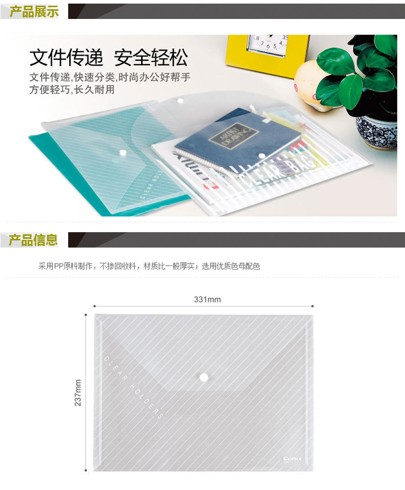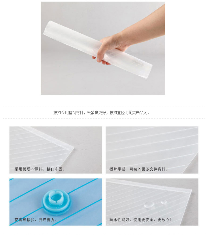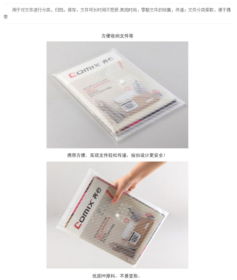 商品名称:齐心 C330 A4透明按扣袋白色 10个/包