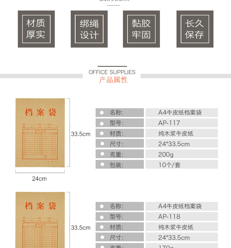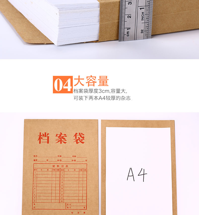 商品名称:齐心AP-123 牛皮纸档案袋 175g 30mm厚A4【箱/12包 包*50个装】