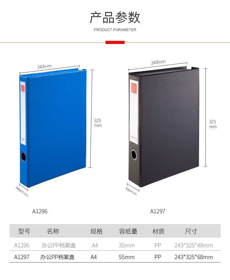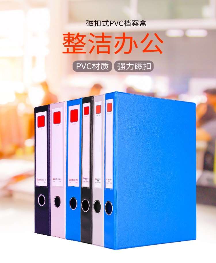 齐心(Comix) A1236 55mm磁扣式档案盒/A4文件盒/资料盒(带压纸夹) 黑色 办公文具 箱*14个