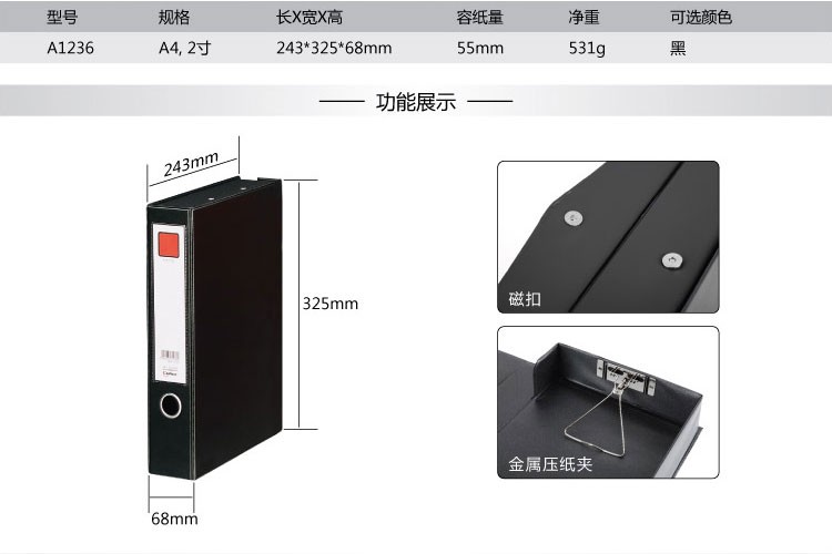 商品名称:齐心(Comix) A1236 55mm磁扣式档案盒/A4文件盒/资料盒(带压纸夹) 黑色 办公文具 箱*14个