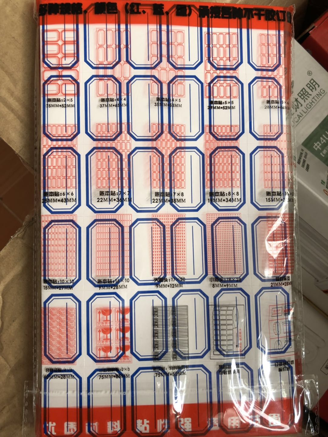 商品名称:蓝马标贴纸蓝边 25*43mm(36贴 58张/包)
