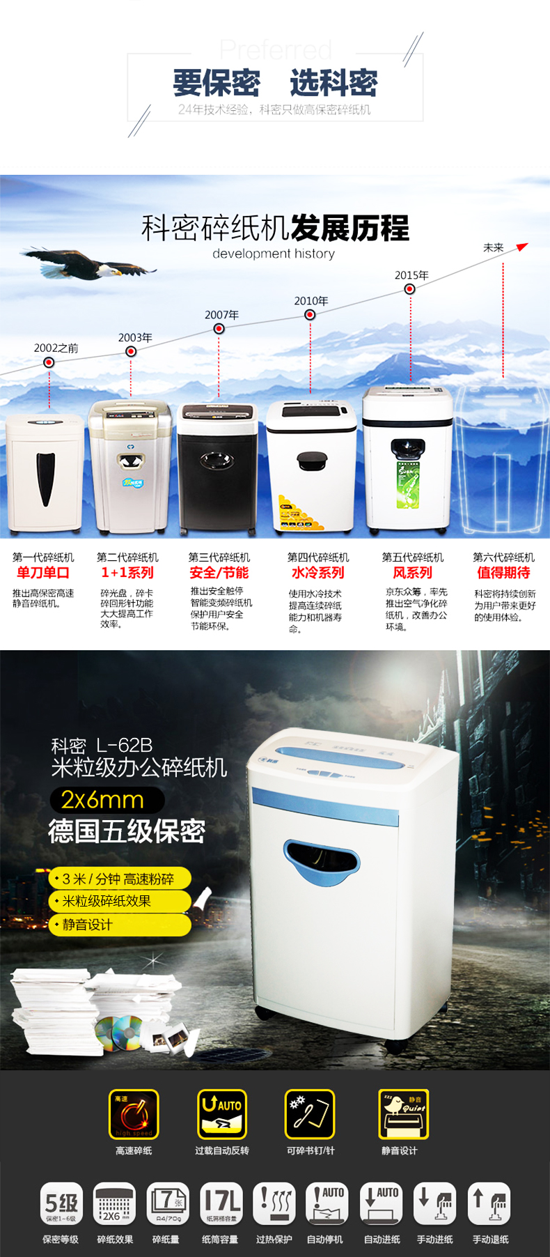 商品名称:科密L-62B科密L62B电动办公专用粒状静音碎纸机粉碎纸机