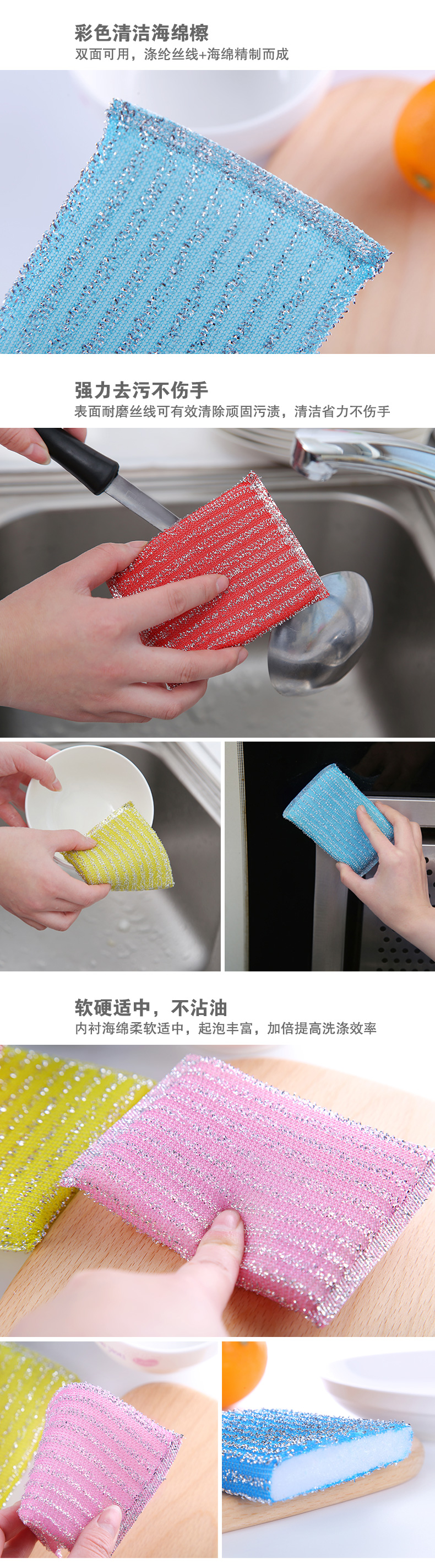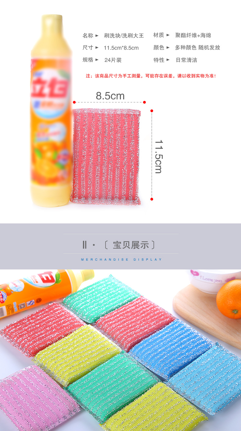 商品名称:洁友刷洗系列 JY-0816 加厚彩色4片洗碗百洁海绵布/洗锅刷/刷锅百洁海绵