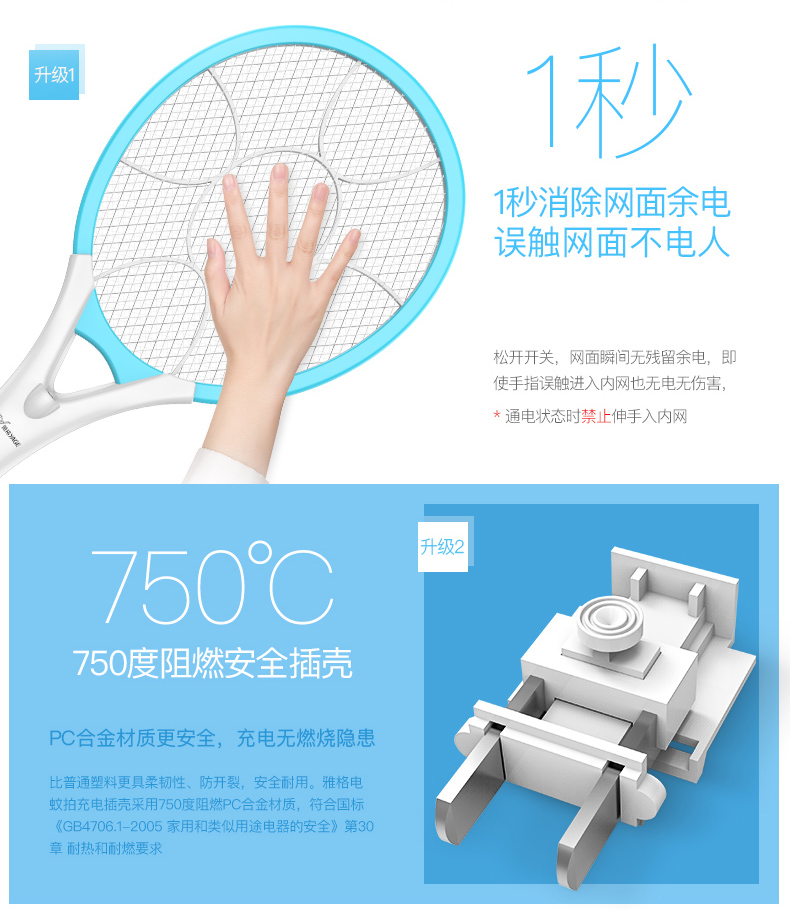 商品名称:雅格电蚊拍充电式家用强力打蚊子电苍蝇拍安全迷你多功能灭蚊器