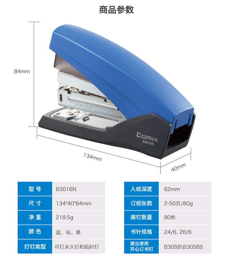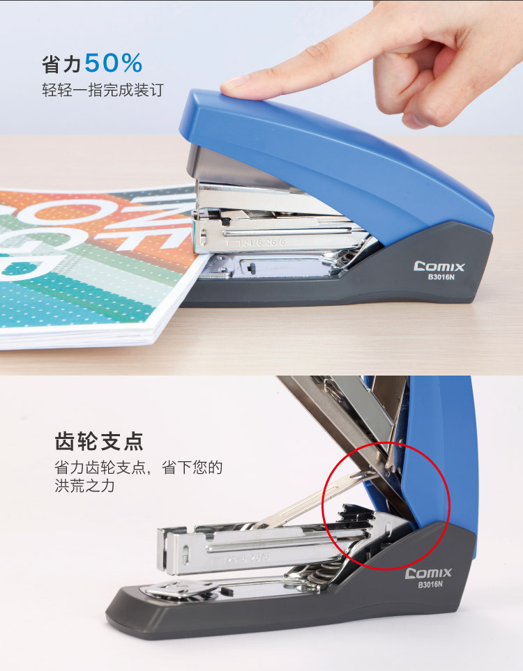 商品名称:齐心B3016N省力订书机12号 学生用订书器手握加厚办公文具