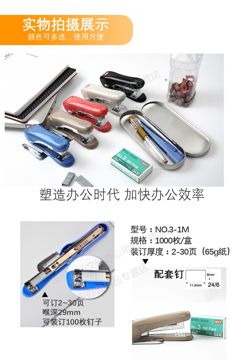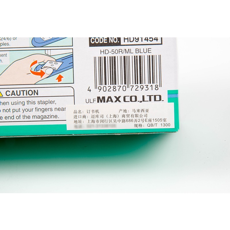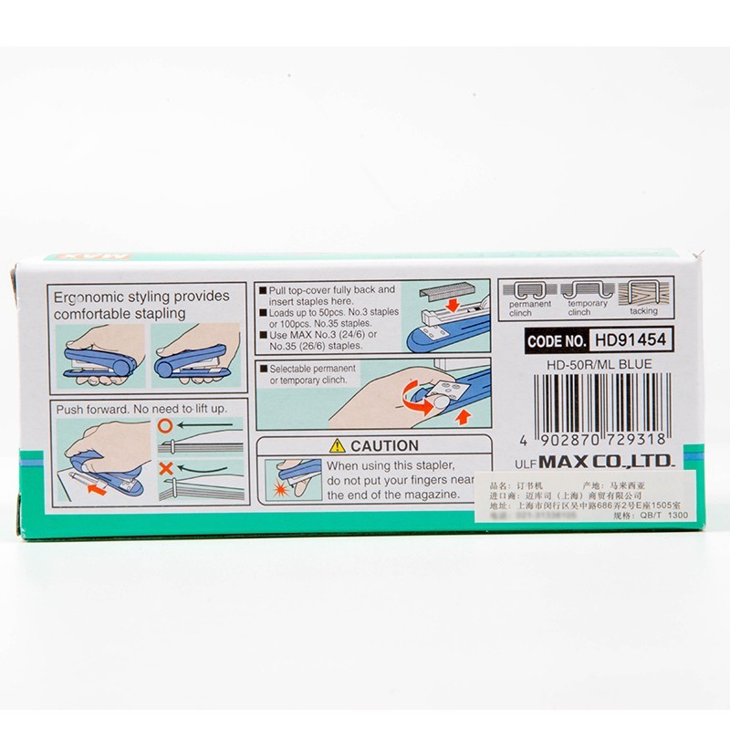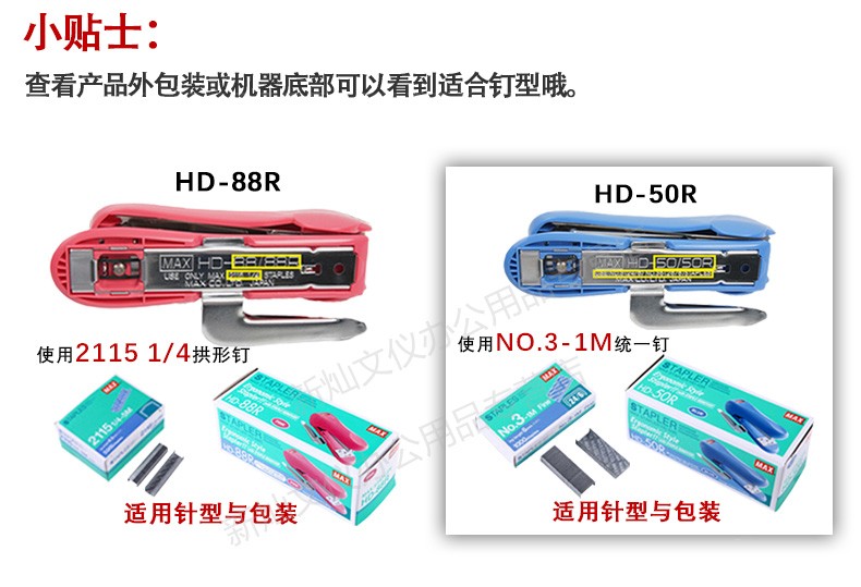 商品名称:美克司HD-50订书机 5个/盒 颜色随机 单位:个