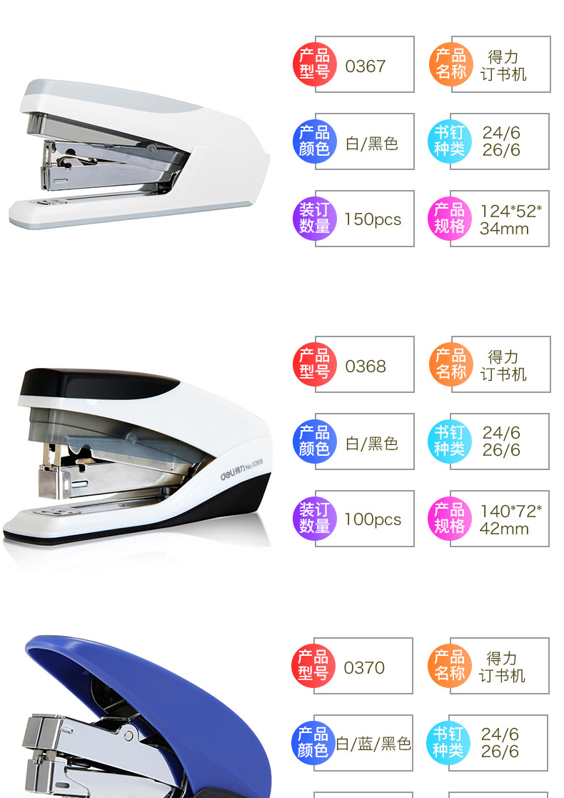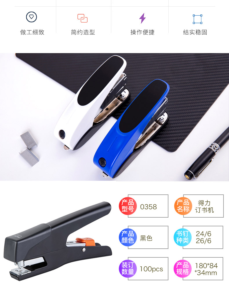商品名称:得力0370订书机省力按键出针尾部起钉器