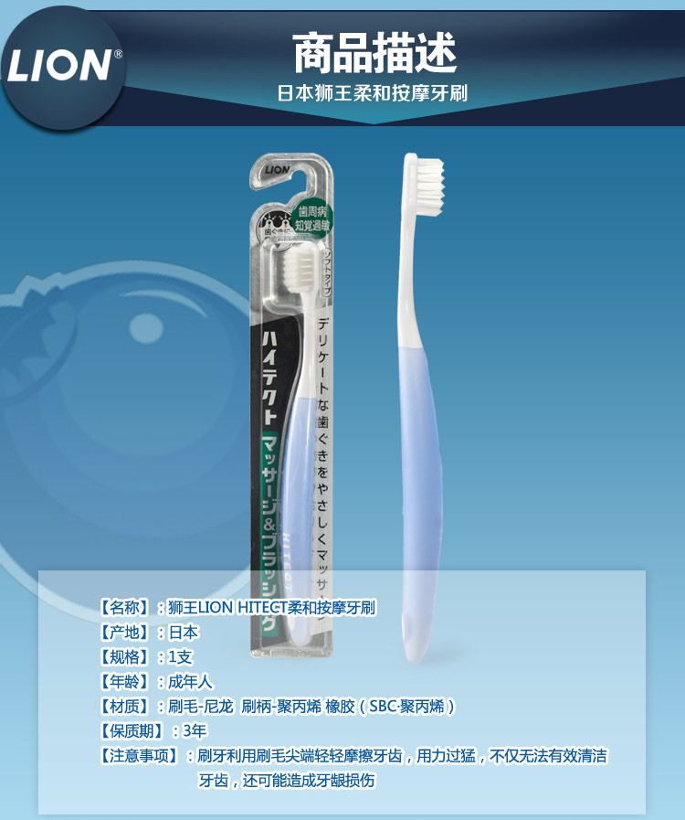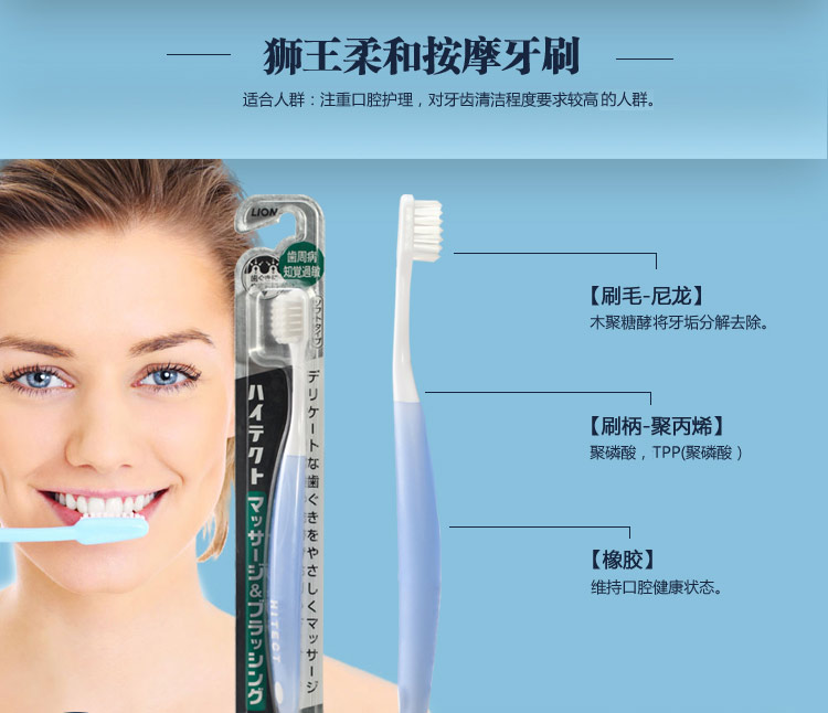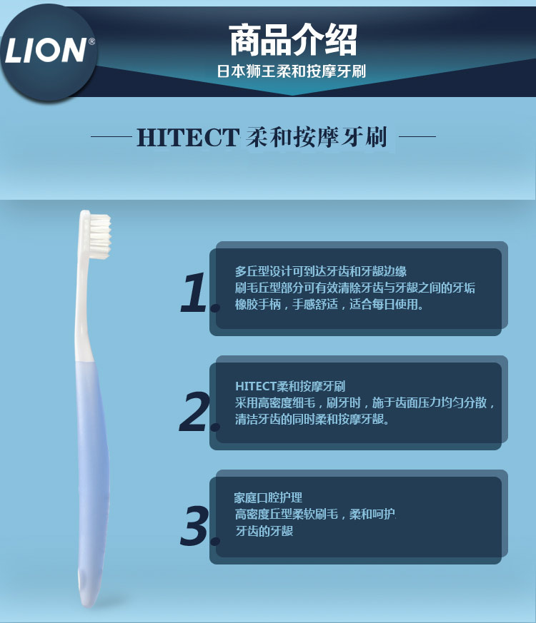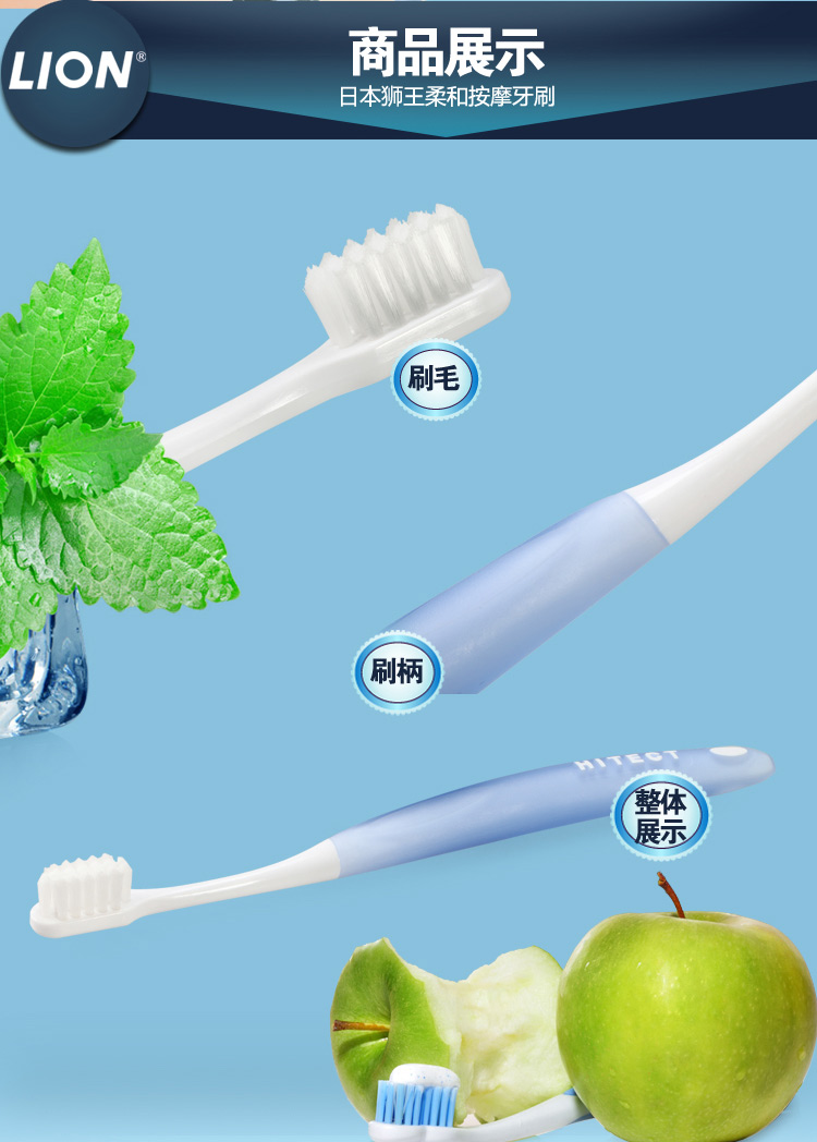 商品名称:日本原装进口LION狮王HITECT柔和按摩牙刷软毛呵护牙龈护齿牙刷