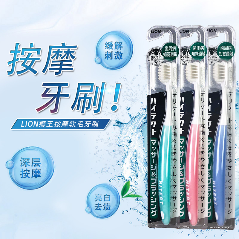 日本原装进口LION狮王HITECT柔和按摩牙刷软毛呵护牙龈护齿牙刷