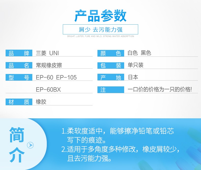 商品名称:日本UNI三菱橡皮EP-105绘图 大号橡皮